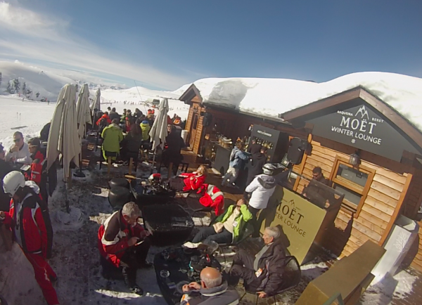 The Moet Winter Lounge is the perfect spot to have a break with a chicken soup and a hot chocolate .