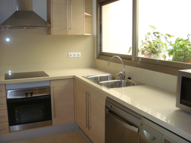 plantabaja is in the living room with plasma TV, 1 bedroom, kitchen indp. equipped (dishwasher, microwave, toaster, … etc) and toilet. First floor consists of 2 double bedrooms, one with sea view and double bed, one with two beds and each with its own bathroom and everything outside.