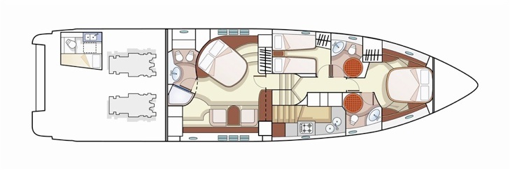 Interior, linen and fabrics are custom-made to meet the best standards available today. The Yacht accommodates 6 guests in: