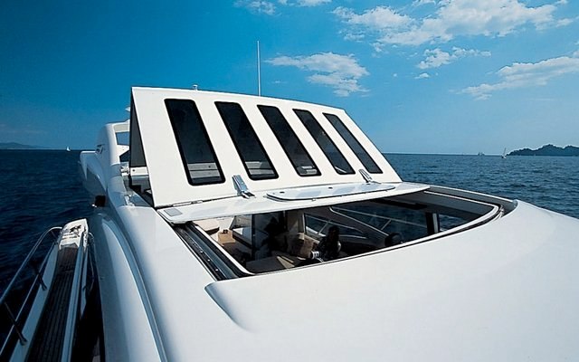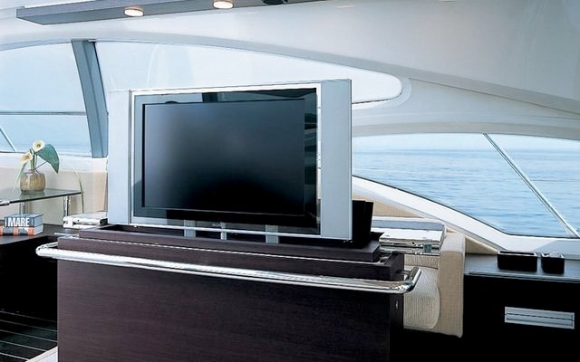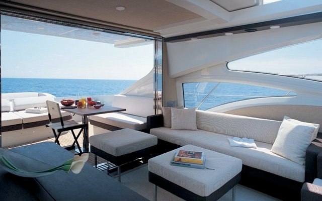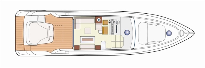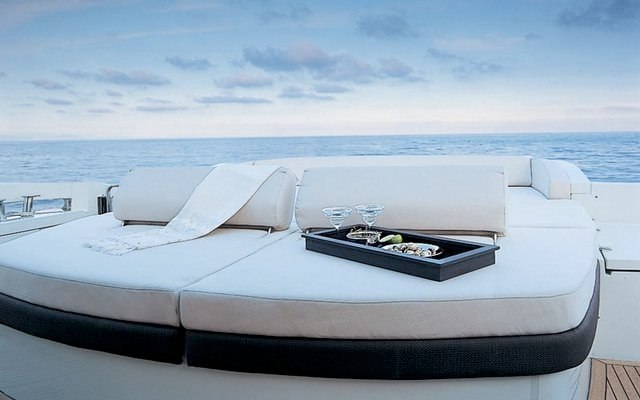 The sliding glass doors will merge the cockpit, salon and outdoor into one large area to enjoy the sea, the sky and those sport boat sensations only the Azimuth 68S offers in its category. To maximize outdoor relaxation you will find an outdoor barbecue, a fridge and an ice-maker.