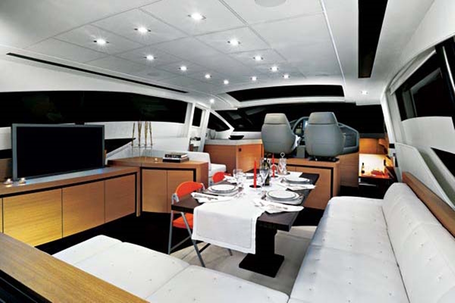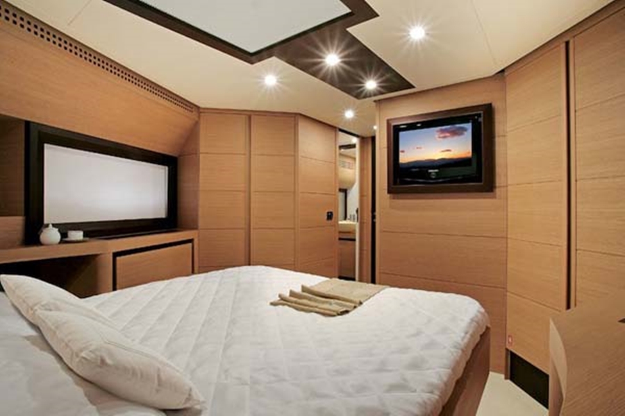 - Accommodation for 8 guests in 4 double cabins, each one with its own bathroom, air conditioning, TV, stereo.