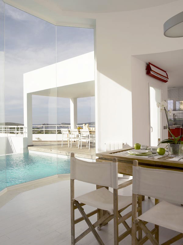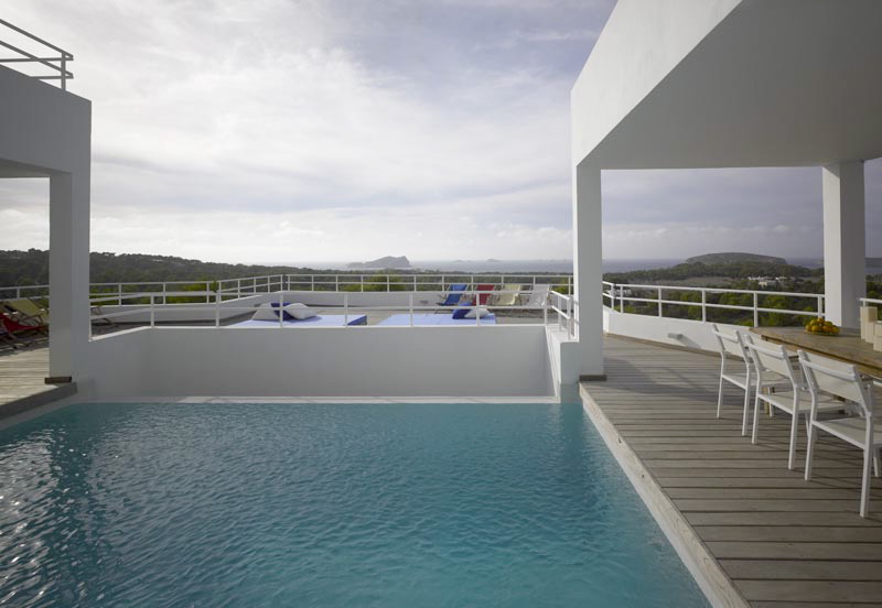 This spectacular contemporary villa has a relaxed airy feel with classic touches. It comprises four double bedrooms, two beautiful bathrooms, a stunning reception area with wonderful cascading waterfall feature, and large super stylish kitchen with American fridge freezer and coffee machine. The dining area leads to a huge decked terrace and pool with loungers, overlooking Cala Comte for spell-binding sunset views . The master bedroom has a jacuzzi and walk-in wardrobe . This exceptional property is located on the west coast of Ibiza and is a 25 minute drive to Ibiza Town and 20 minutes from the airport.