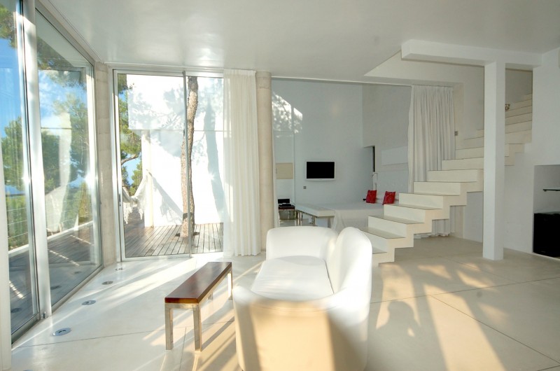 Es Codolar and the island of Formentera. You couldn’t ask for anything more.Ultra-modern Mansión carved into the solid rock 200 m. above sea level, amid his own mature pine forest.