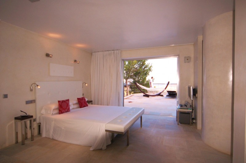 external living areas means you really won’t want to leave. All suites have fantastic views and terraces, with en-suite bathrooms, DVD, sound system, flat screen digital satellite TV, AC and mini-fridge. The spectacular 180º panoramic views take in Ibiza Old Town, the beaches of Salinas,