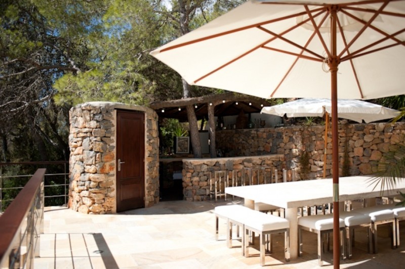 The pool-side bar, dining and breakfast area with barbecue and 600m2 of terraces and