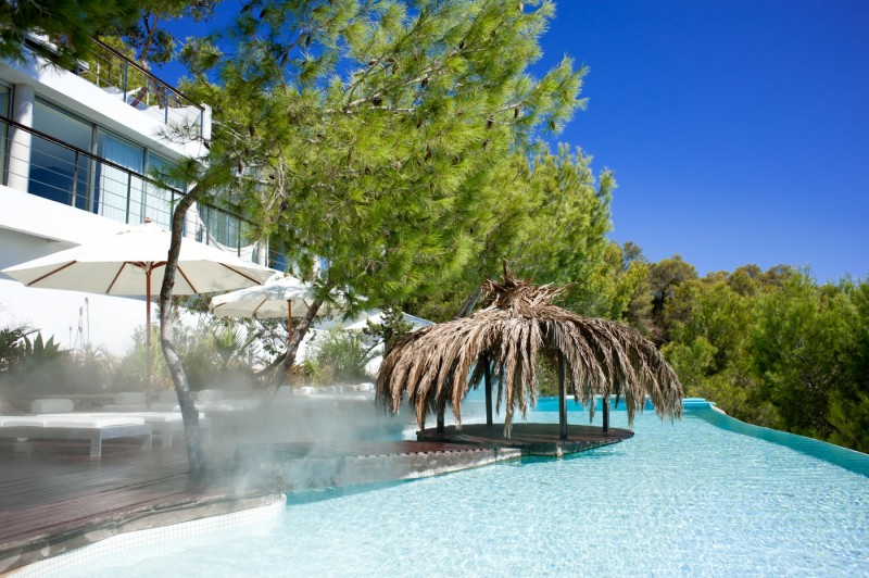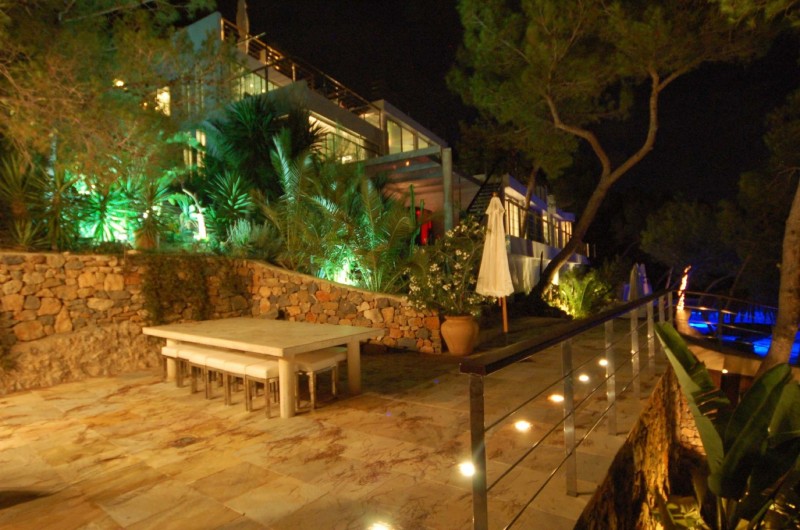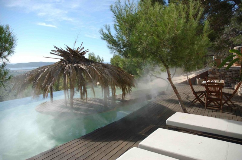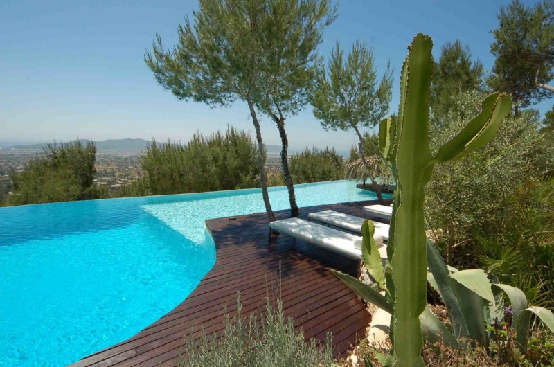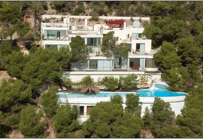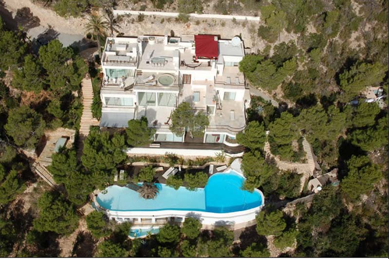 This ultra-modern mansion is not only exceptionally stylish, spacious and super luxurious; it’s carved into solid rock 200 m above sea level, in its own mature pine forest. In one the most desirable locations on the island – only 6 km to Ibiza Town on the road to San José – the amazing nightlife, clubs and bars of Ibiza are about ten minutes away, as are some of the best beaches on the island. It’s the place to chill out and have fun, with a large 32m pool with waterfalls, a hidden cave, floating cabana