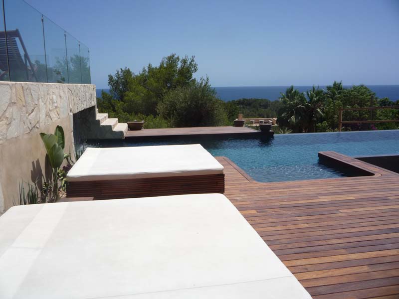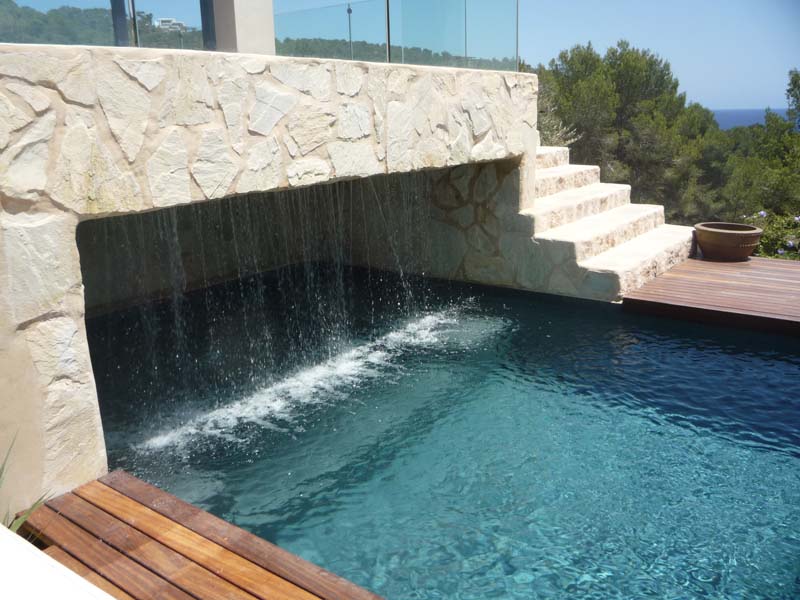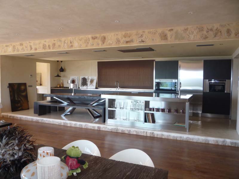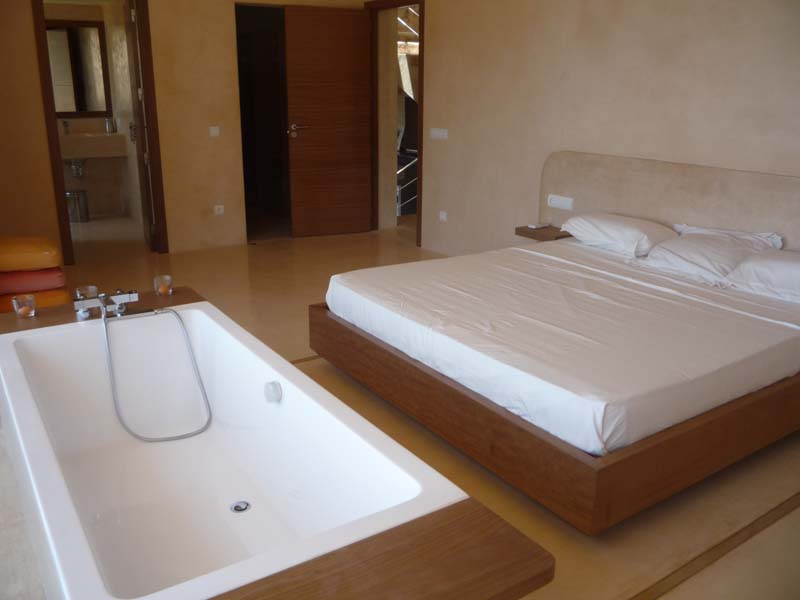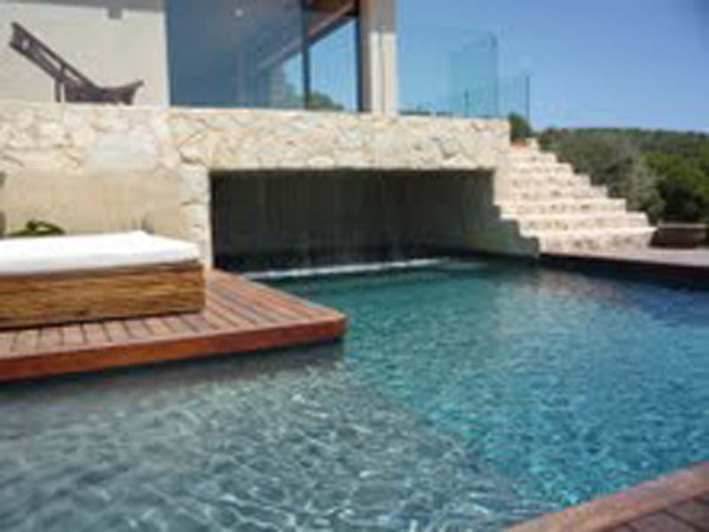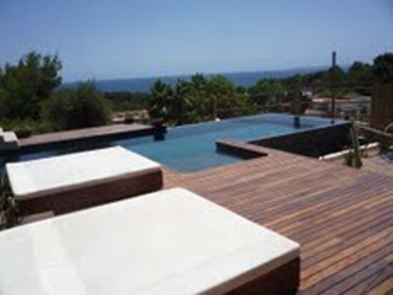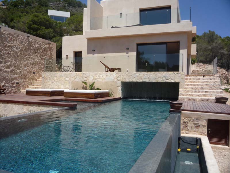This outstanding villa is ideally situated in Talamanca, two minutes from Pacha, Marina Botafoch and Ibiza town. With dry stone steps leading down to the decked infinity pool, there’s a wonderful waterfall feature and huge day beds to lap up the sunshine and scenery – views of the mountains, the sea and Formentera. There are four double bedrooms with en-suites and dressing areas, a large living/dining area and fully equipped kitchen with coolers and freezers. All the furniture is contemporary with a HOME intelligent system and plasma screen TVs in some of the rooms. There is AC, a safe, an alarm.