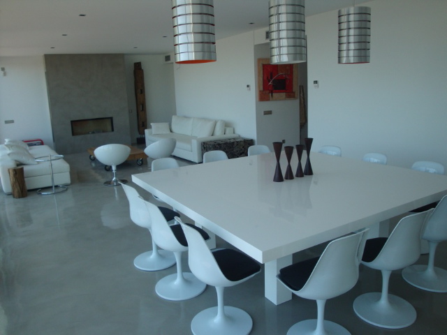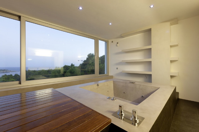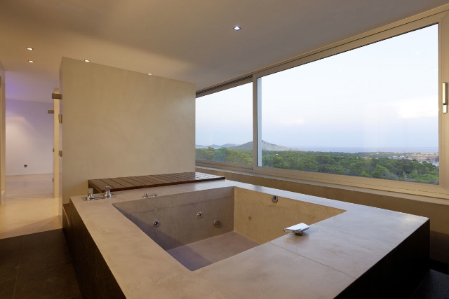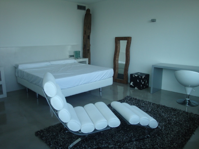 The ground floor comprises an airy dining area for 12, comfortable living space and lush white lacquered kitchen of 100 m2 kitten with Siemens and Smeg appliances – an integrated fridge, combi washing machine, dishwasher and dryer. You also find a super bedroom and master suite of 50 m2. On the first floor are 2 suites, one being the master suite of 70 m2 with terrace and silver Jacuzzi in a sunken platform.