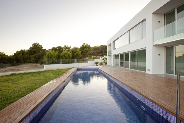This spectacular villa is truly individual in its design; uber minimal and simply styled. Features include free standing partition walls, smooth shining floors, fluid furniture and lots of light. Fixtures and fittings are finished to the highest possible standard with all the gadgets for a true luxury feel. Not content with a beautifully decked outdoor pool, the basement houses a heated swimming pool with spa area including sauna, shower, toilet and a 110 m2 gym. Not only that, here you find the fantastic guest apartment of 35 m2, with a wonderful suite of 60 m2 and a second bedroom. What more could your guests ask for?