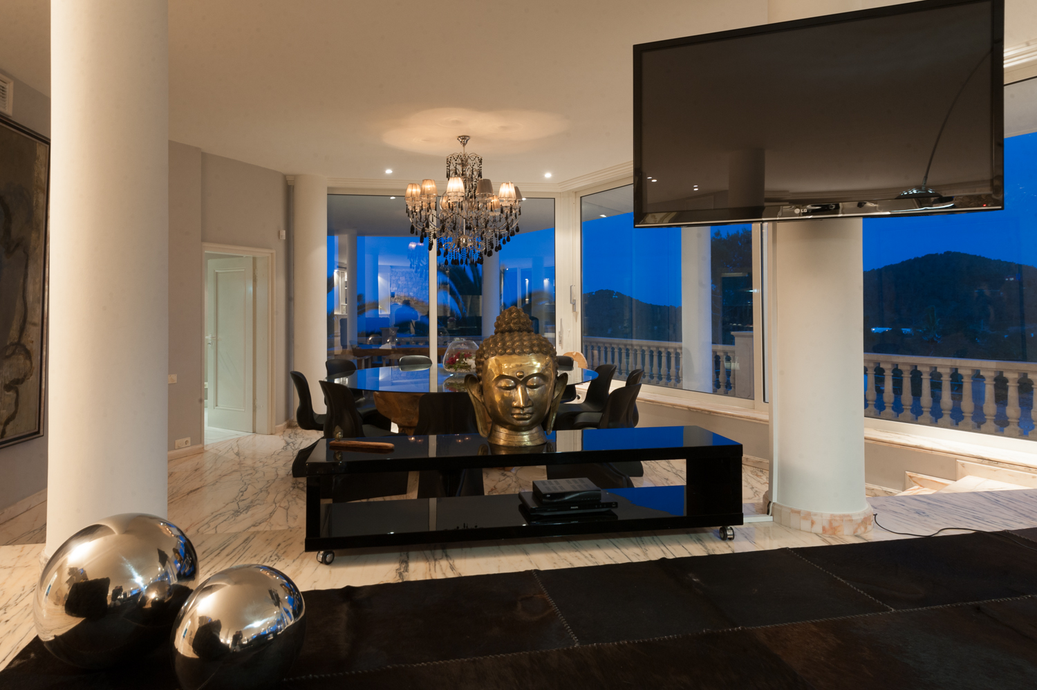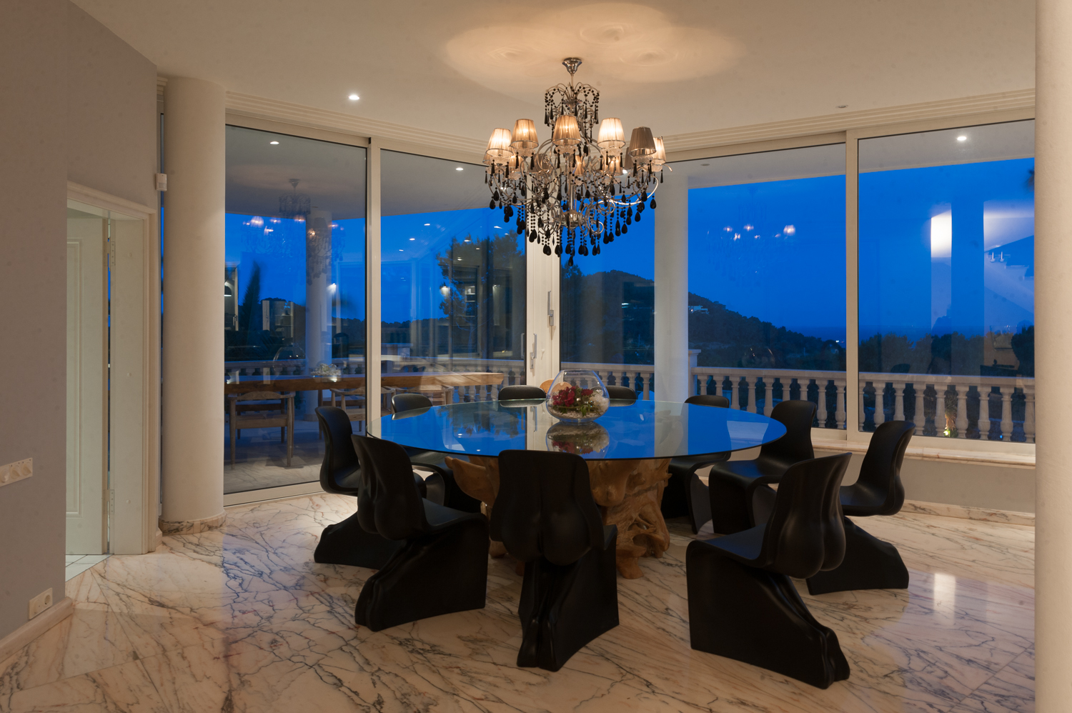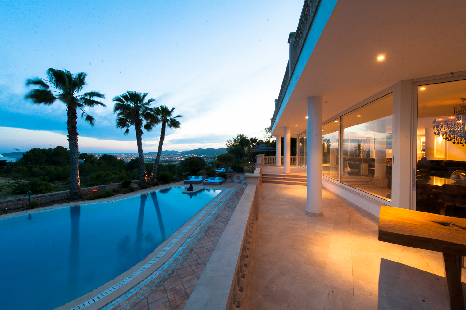 This villa is in one of the best locations in the island, 3 minutes to Ibiza Town , with amazing view all over the sea and the old city , witch bright over night full view from Roca llisa until San Jose, with sunrise and closed sunset, full privacy perfect for private parties and host friends .