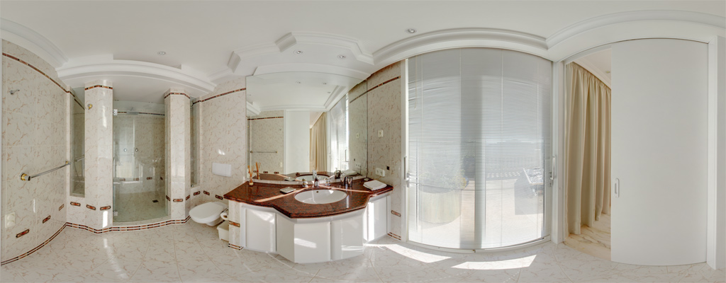 There 8 bedrooms with bathrooms all en suite plus 2 extra external bathrooms for pool using.