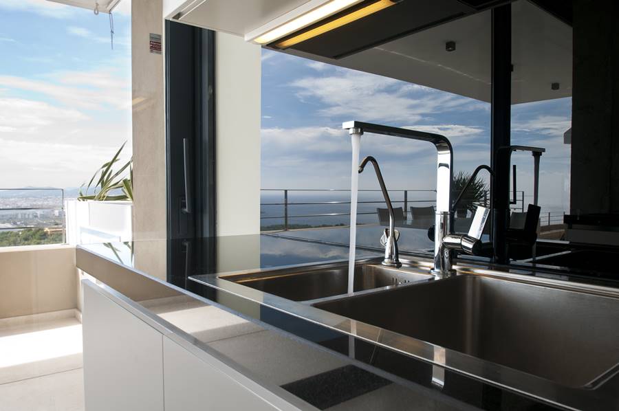 Guest toilet. Access to main panoramic terrace, pool and outdoor dining.