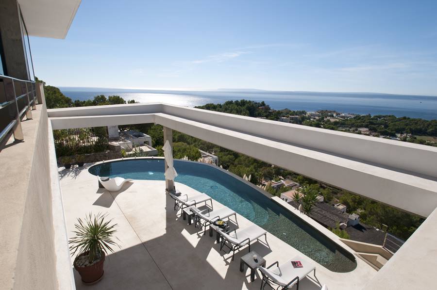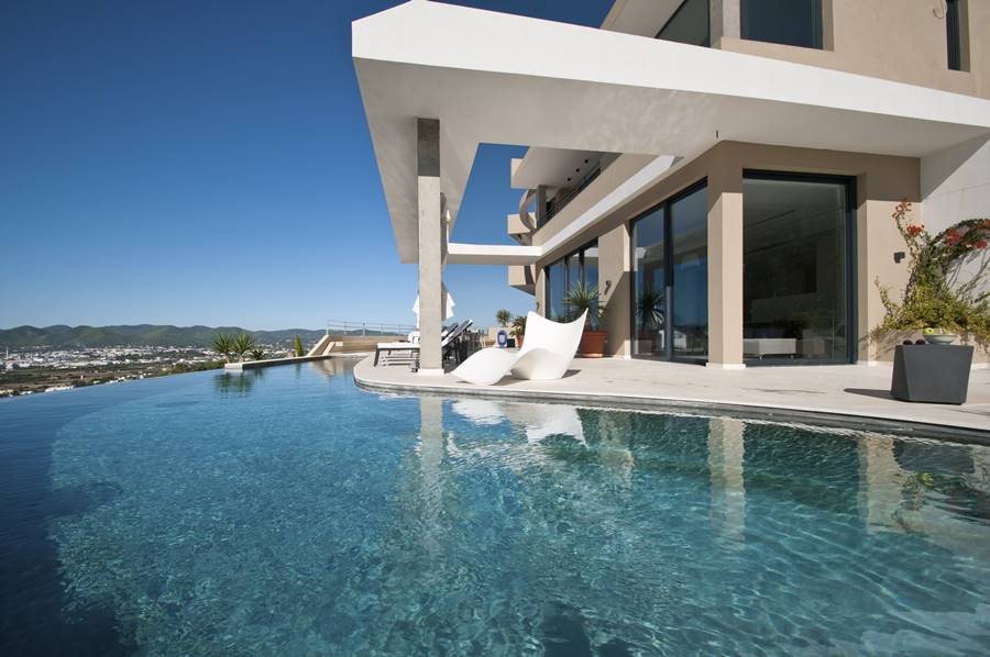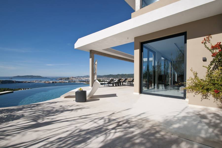 Magnificent contemporary villa located in one of the most exclusive residential areas of Ibiza. For its strategic location overlooking the bay of the city with spectacular views, the villa is the ideal location for those seeking the privacy and the exclusivity of a private villa without sacrificing proximity to the city and all its activity. Just 5 minutes drive from the beaches of Talamanca and S’estanyol and 15 minutes from the famous beaches of Ses Salines and Es Cavallet. Just 5 minutes from the seafront and town center. Supermarket and other services in the town of Jesus, 5 minutes drive.