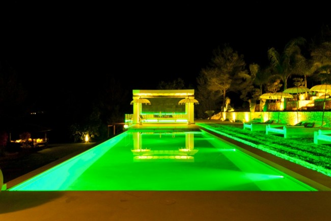 During the night the villa is transformed into what is considered one of the most spectacular lit villas on the Island. The villa features a spectacular spectrum colors with lighting effects on the trees, plants, swimming pool and terraces. The villa is very suitable for photo shoots, weddings, TV/Movie set and special promotional events.