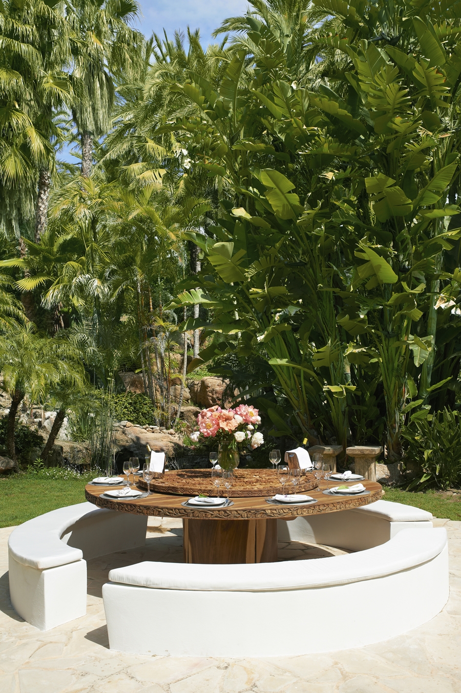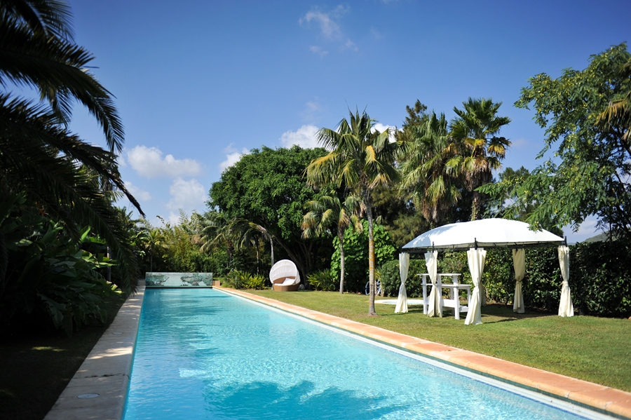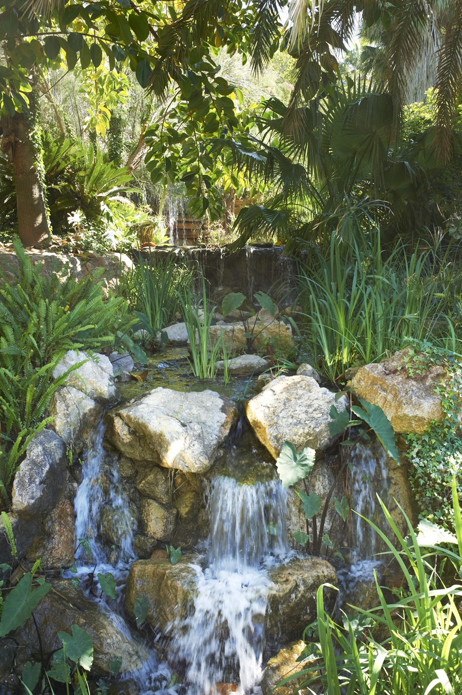 The estate has magnificent gardens, cultivated over a long period of time with mature palms, luxuriant trees and plants, bamboo and cacti. There are two small lakes with waterfalls, a tea house on a fishing pond, and wooden bridges over rippling brooks. From every angle within this wonderfully secluded estate, the tropical flora and fauna are extraordinary.