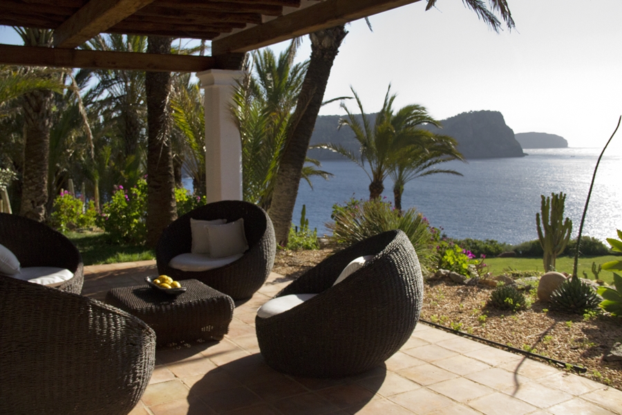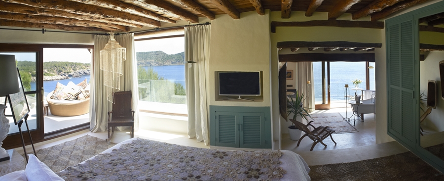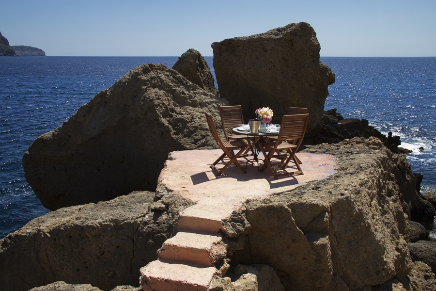 Along the coast above beautiful gardens stands the gracious guest villa La Buena Vista. The idyllic sea views along the dramatic coastline are even more stunning from here. This villa has a charming living room with fireplace, a dining room with an open kitchen, and two spacious en suite bedrooms with terraces. From the front you can experience the most spectacular sunrises in Ibiza, and from the back there’s a lush view of tropical garden and waterfalls.
