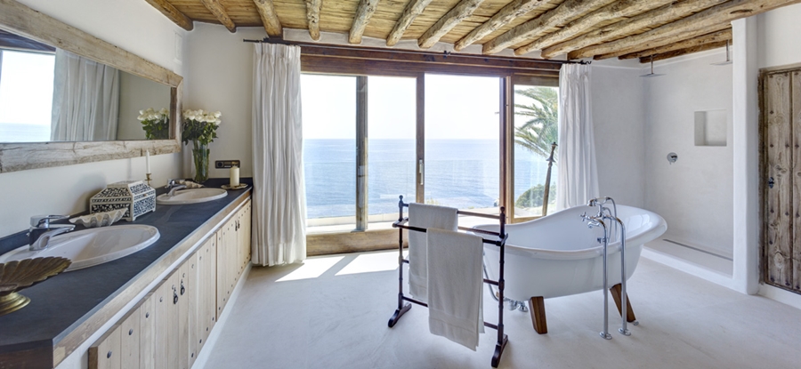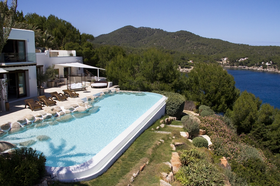 Villa Blue is one of the most unique seaside properties in the Med; exclusive, secluded and situated on magnificent cliffs with direct access to the open sea and a guest villa nearby. Next to Cala Mastella near the charming village of San Carlos, some of Ibiza’s best secluded beaches are just a few minutes drive along quiet coastal roads.