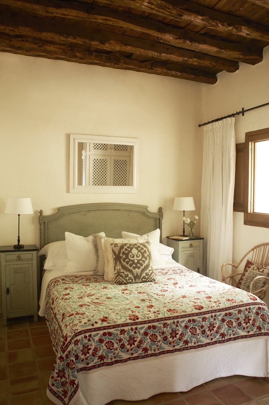 This classy traditional style finca has 4 en-suite bedrooms built on two levels, overlooking the infinity pool and the sea. Large windows maximize the views with lush tropical gardens towards the back. The ground floor includes a large living room with open fireplace and two en-suite bedrooms accessing the gardens and pool. Upstairs are a guest room and the large master bedroom with spacious terrace and balcony overlooking the infinity pool and bay.