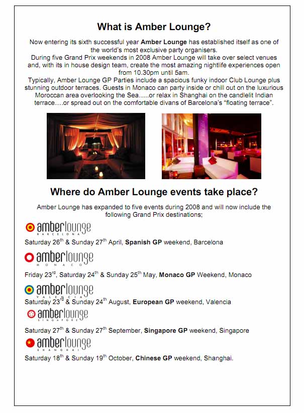 Amber Lounge is the ultimate VIP nightlife & F1 Hospitality experience, following the GP series around the world.